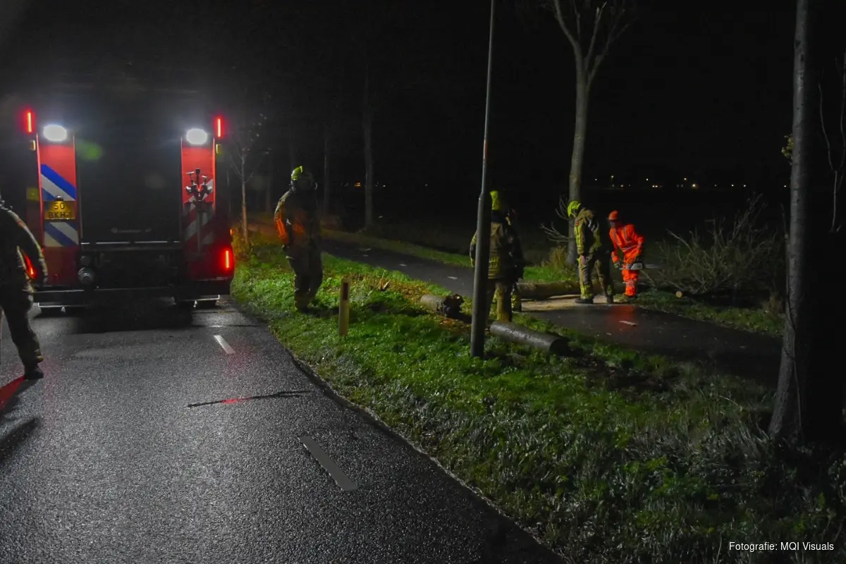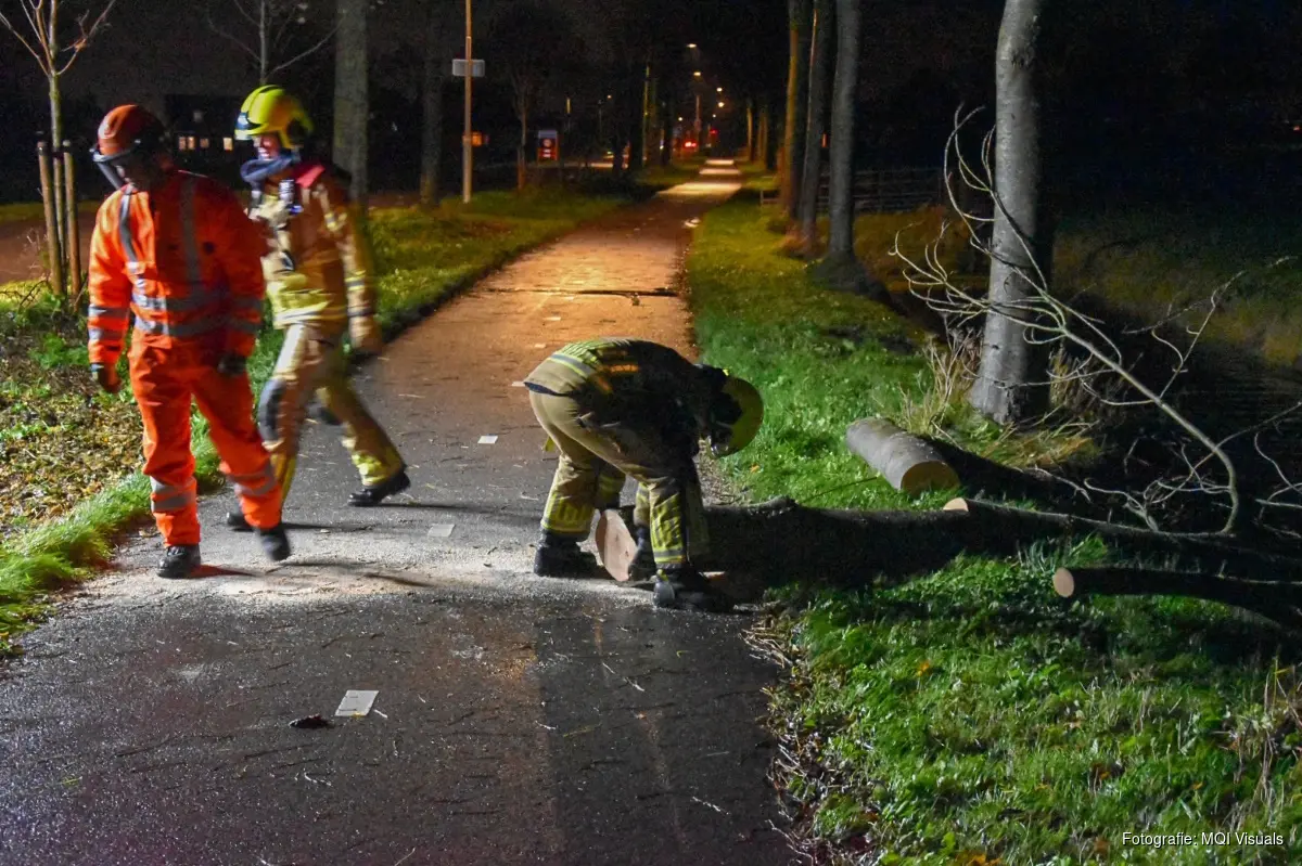 De boom viel over een fietspad heen, waarna de brandweer uitrukte. De brandweer heeft de boom in stukken gezaagd en langs de kant van de weg neergelegd, de gemeente zal dit later opruimen.