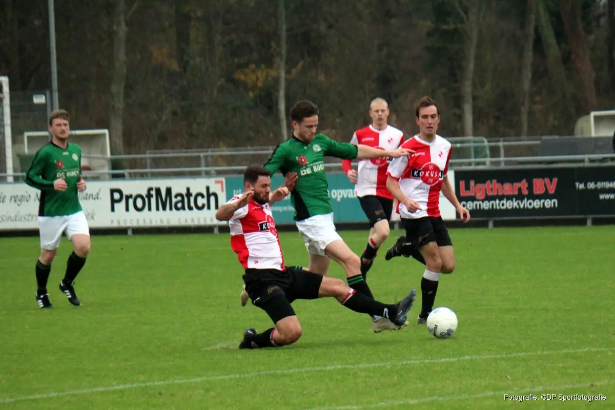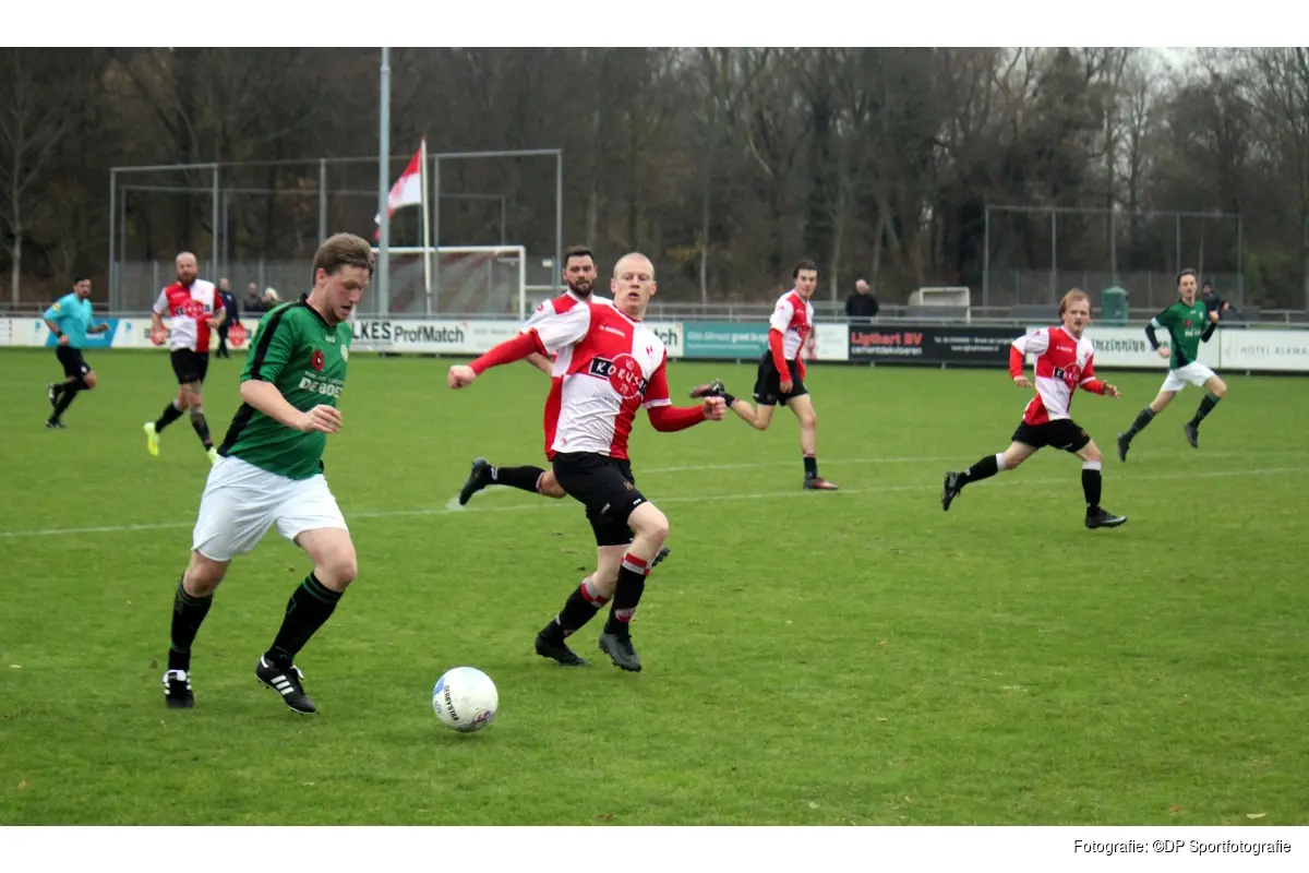 Foto's: DP SportfotografieIn dezelfde klasse speelde DWB met 2-2 gelijk tegen Alcmaria Vicrix, een stand die al bij rust bereikt was. Norman op 't Veld en Cas Witsmeer scoorden voor de thuisploeg.